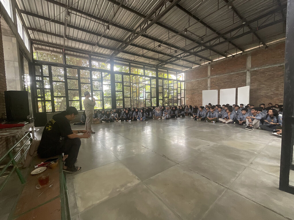 Kegiatan berlanjut dengan dialog bersama seniman Jumaldi Alfi, berbagi proses kreatif, riset gagasan, serta refleksi atas isu sosial dalam praktik seni kontemporer. Diskusi berlangsung terbuka dan kritis, menghadirkan perspektif tentang pentingnya konsistensi ide, keberanian bereksperimen, dan kesadaran konteks.